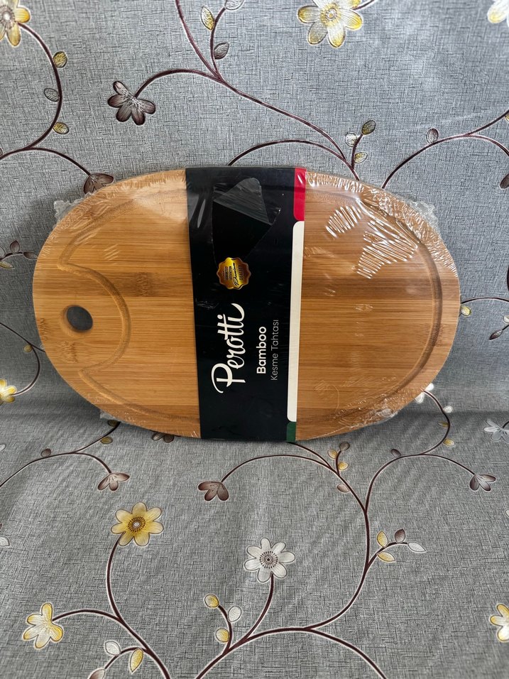 Bu koyu kahverengi bambu kesme tahtası, kolay tutuş için sap deliği ve yuvarlak tasarıma sahiptir. Mutfakta kullanıma uygundur.