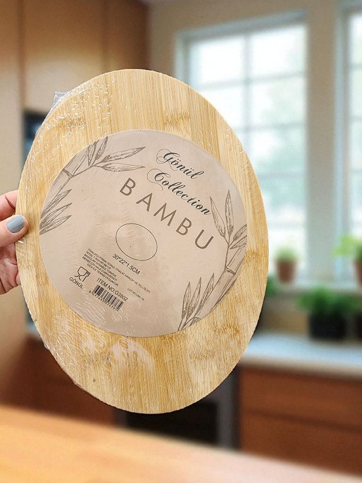 Gonit koleksiyonundan açık bej renkte bambu oval kesme tahtası, mutfakta rahat kullanım sağlar. ️