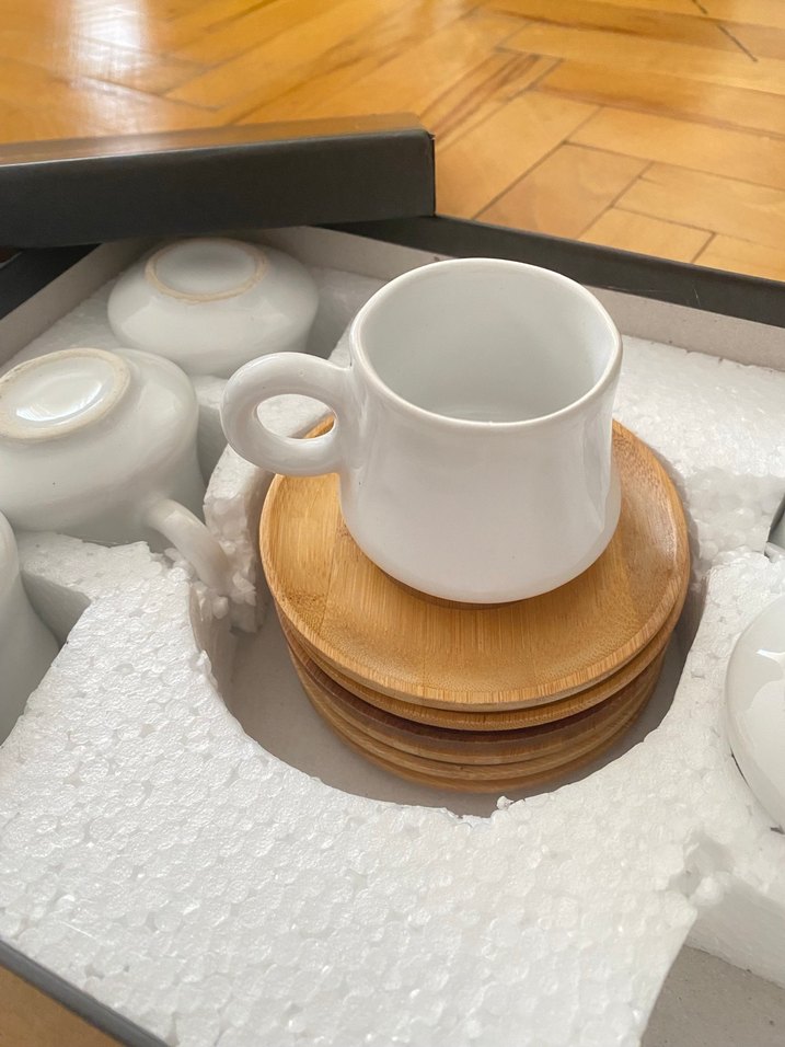 Bambu tabaklı fincan seti