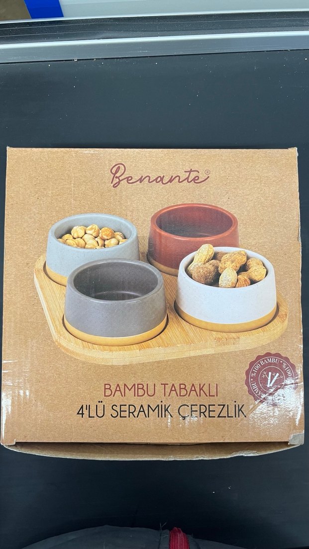 Bambu tabanlı, farklı renklerde dört seramik çerezlikten oluşan set. Atıştırmalıklar için uygundur. ️