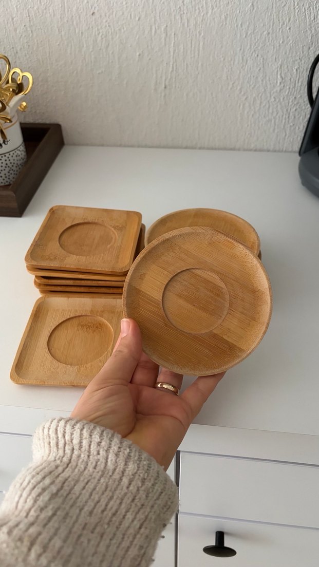 Bej renkli bambu malzemeden yapılmış yuvarlak ve kare bardak altlıkları seti, yüzeyleri korumaya uygundur. Herhangi bir çatlama kırılma bir kusuru yoktur on ikili olarak satıyorum