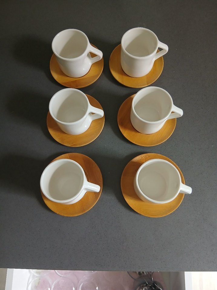 Bambum Beyaz Seramik Fincan ve Ahşap Altlık Seti