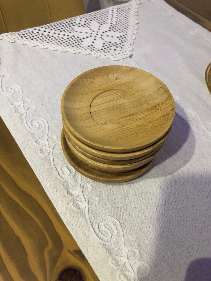 6 adettir kullanıma bağlı bazılarının renginde hafif solma mevcut kullanıma engel değildir fotoğraflarda belirttim Parlak bej renkte, bohem tarzda, doğal ve pürüzsüz yüzeyli ahşap tabak seti. Sofranıza rustik bir dokunuş katar. ️