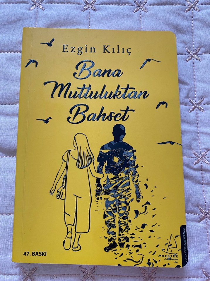 Ezgin Kılıç'ın "Bana Mutluluktan Bahset" adlı romanı, mutluluk ve insan ilişkilerini konu alır. 47. baskı olan bu kitap, sarı kapaklıdır.