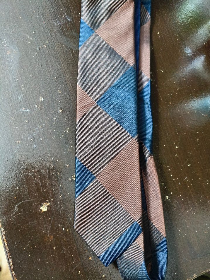 Kahverengi ve lacivert tonlardan oluşan desenli erkek kravat, iş stiline şık ve yenilikçi bir dokunuş katar. Trendsetterlar için ideal.