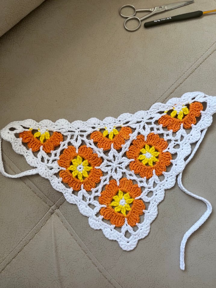 Çiçek desenli, dantel detaylı renkli örgü bohem saç aksesuarı