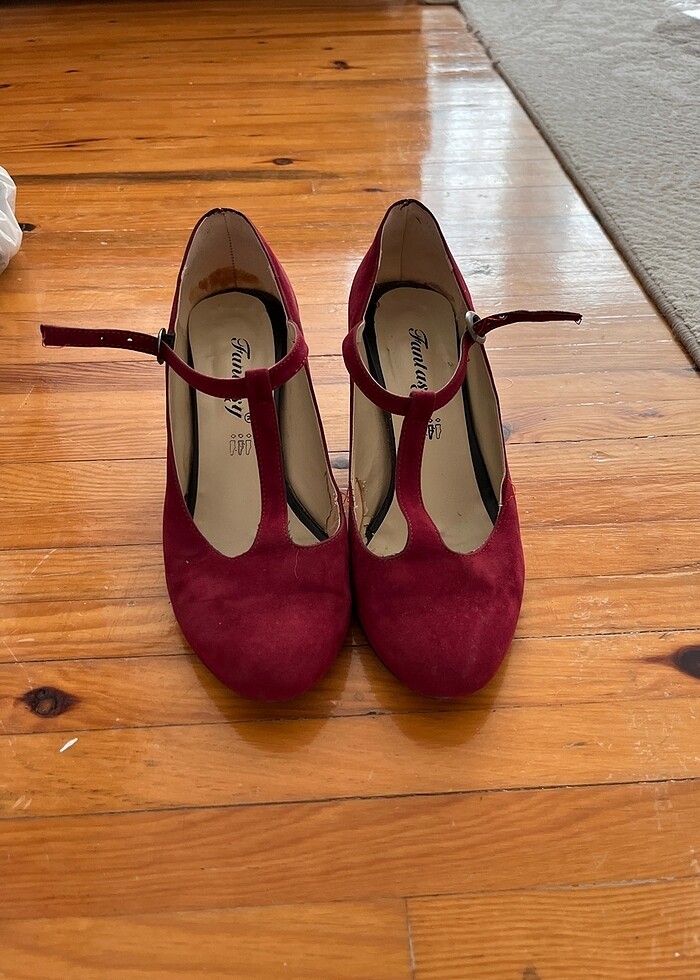 İçindeki aşınmalar fotoğrafta bellidir bantlı mini topuklu kadife ayakkabı dışında hiçbir kusuru yoktur ❤️