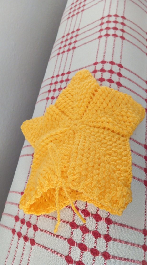 Canlı sarı renkte, dokulu yüzeye sahip yumuşak ve emici banyo lifi. Rahatlatıcı banyo için ideal.