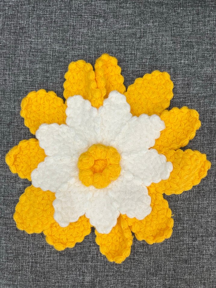 Yumuşak dokulu, sarı ve beyaz yapraklı çiçek şeklinde banyo lifi, nazik temizlik sağlar. Çeyiz için de uygundur El emeği ❤️