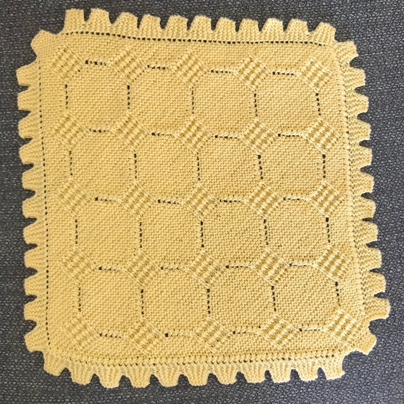 Parlak sarı renkte, dokulu geometrik desene ve dalgalı kenarlara sahip örgü banyo LİFİ. Yumuşak ve konforlu kullanım Muhteşem işçilik, GÖSTERİŞLİ. 35x35 T