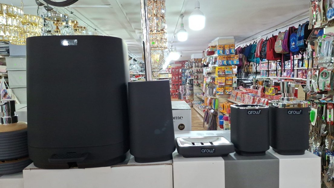 Sıfır ürün siyah gri beyaz krem renkleri ile banyonuza şıklık katar çöp kovası fırçası diş fırça kutusu sıvı sabunluk ve katı sabunluk bulunmaktadır