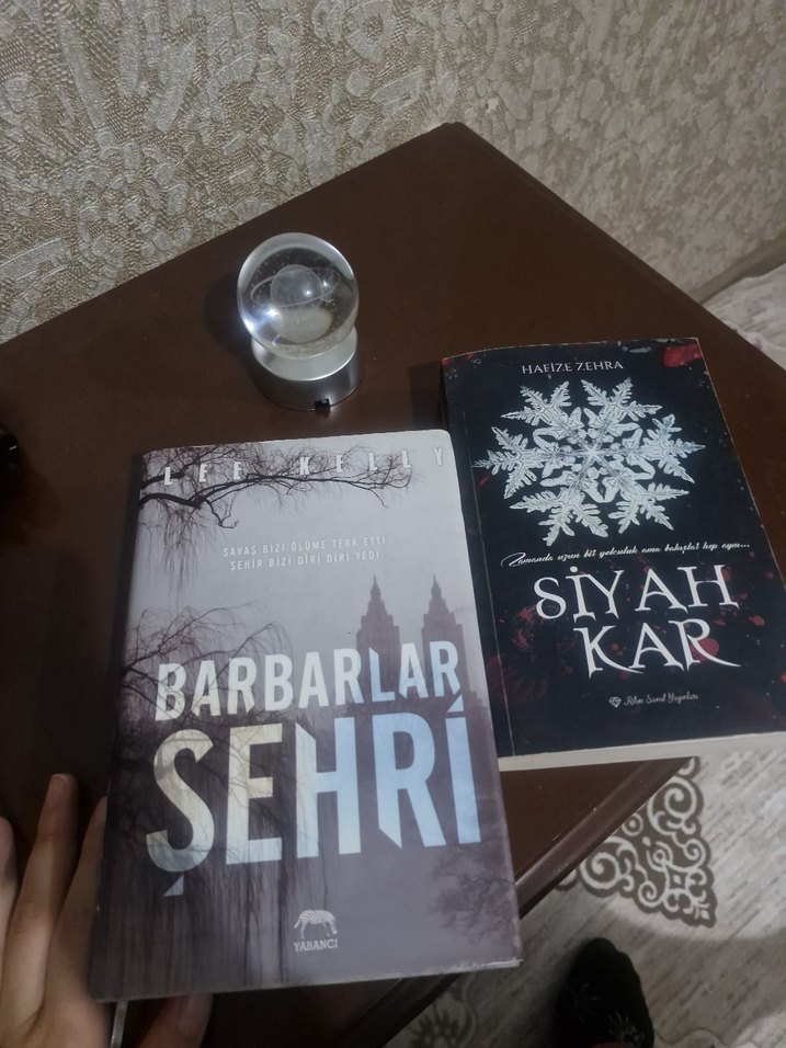 "Barbarlar Şehri" ve "Siyah Kar" adlı romanlar, kar ve şehir temalı karanlık kapaklara sahip.
