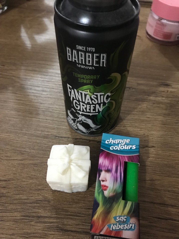 Spreyin yüzde 35/40 I dolu. Saç tebeşiri sıfırdır. Minik hediyelik sabun brüt parfüm esanslı kokulu sabundur ve sıfır üründür.hepsinin fiyatıdır.