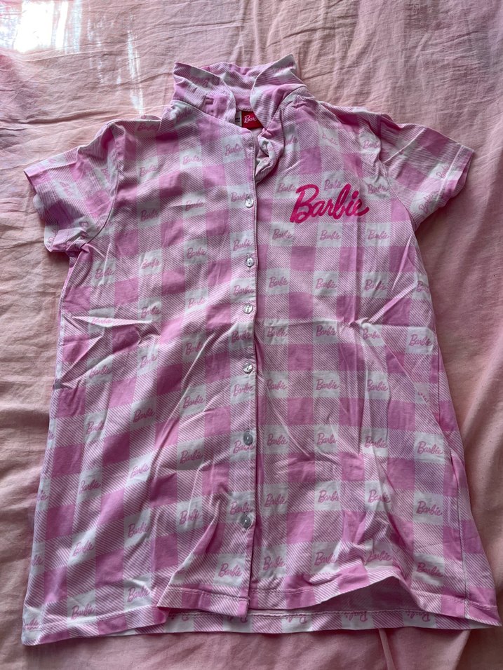 Barbi Desenli Pembe Kız Çocuk Gömlek