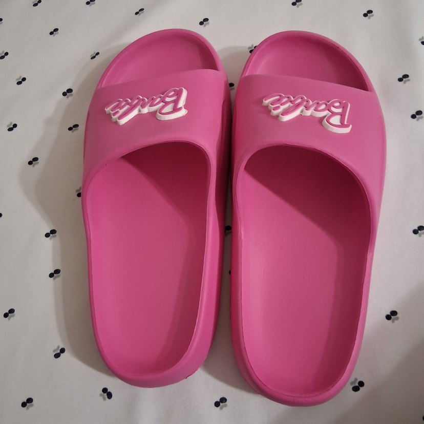 Pembe platform topuklu terlikler, renkli Barbie baskısı ile günlük kullanıma uygun sade ve şık bir tasarıma sahiptir. 30 31 numara