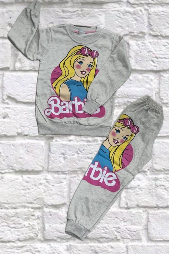Barbie Baskılı Gri Kız Eşofman Takımı
