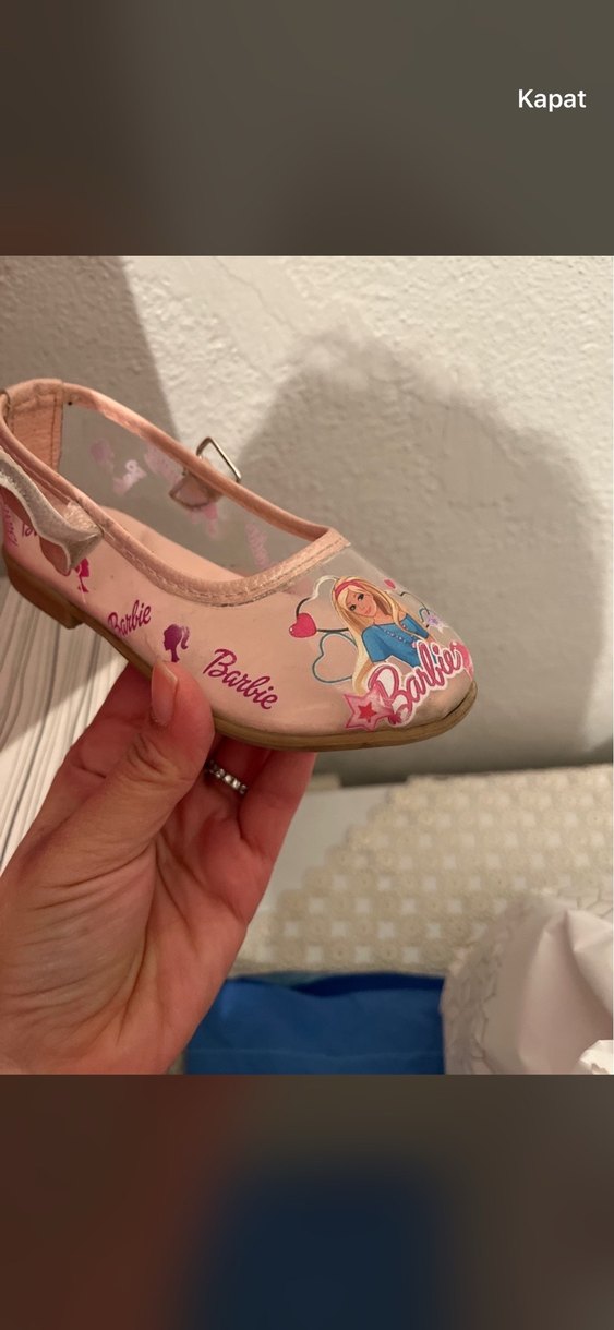Pembe, Barbie baskılı kız babet ayakkabı, lastik malzemeden ve tokalıdır. Trendy ve sokak tarzına uygundur.