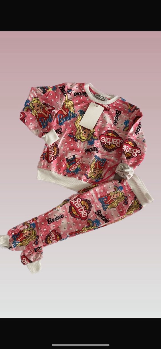 Barbie Baskılı Pembe Kız Eşofman Takımı