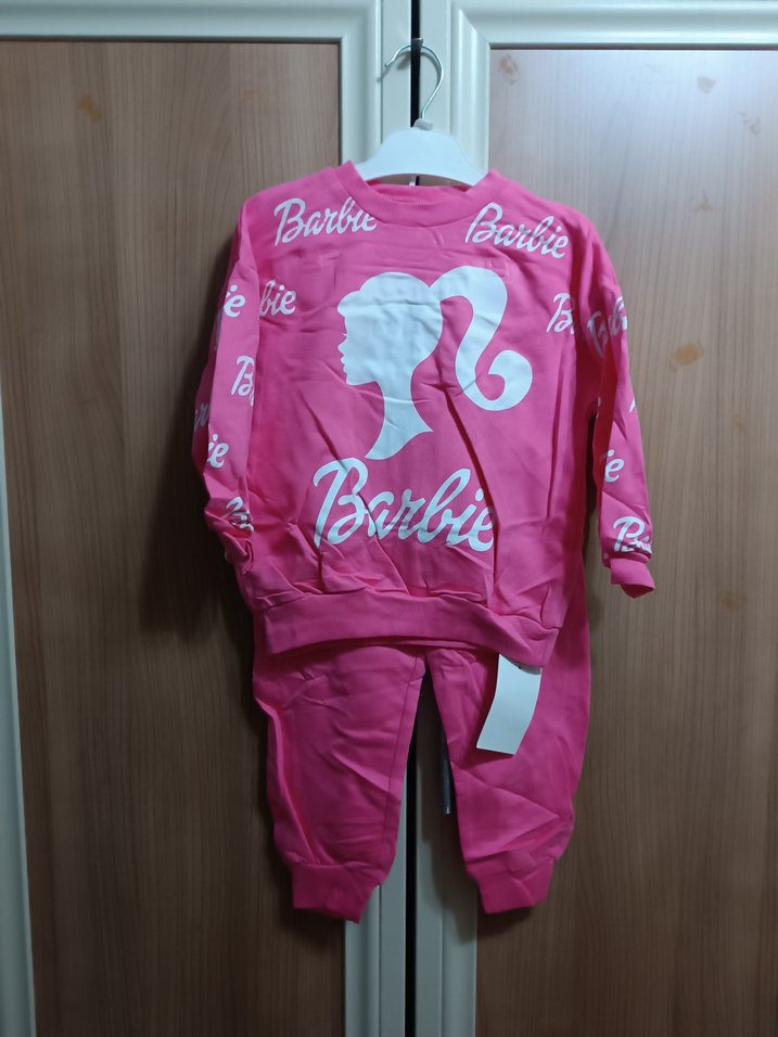 Pembe renkli, Barbie baskılı kız eşofman takımıdır. Uzun kollu, bol kesim ve yuvarlak yakalıdır. Sentetik kumaştan üretilmiştir. Trendy ve rahat bir sokak stili sunar.