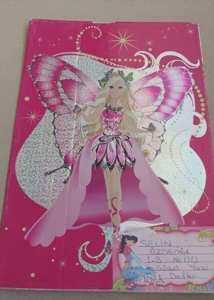 Barbie mariposa defter kabı küçük boy üzerinde etiket mevcut çıkartılabilir sadece ön üst tarafta yıpranma var defter takma yerleri sorunsuz inceleyerek alınız iade kabul etmiyorum #barbie #mariposa #barbiekoleksiyon #barbiedefterkabı