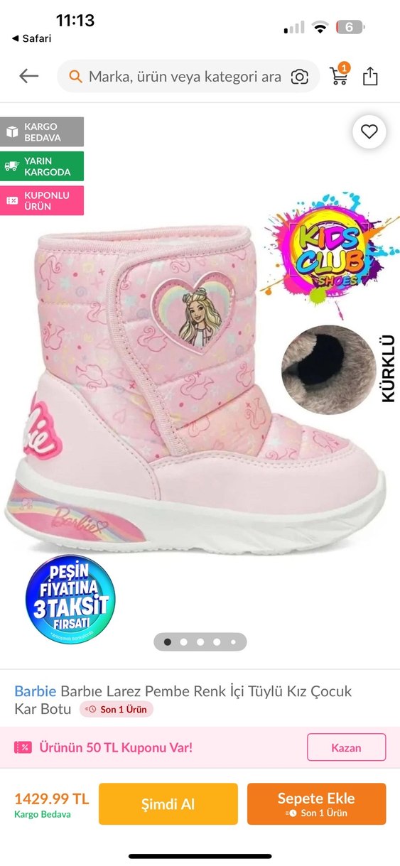 Pembe tonlarında, bağlama desenli ve içi yumuşak kürklü kız çocuk kar botu. Barbie detaylı, rahat tabanlı sokak stili kar botu. ❄️