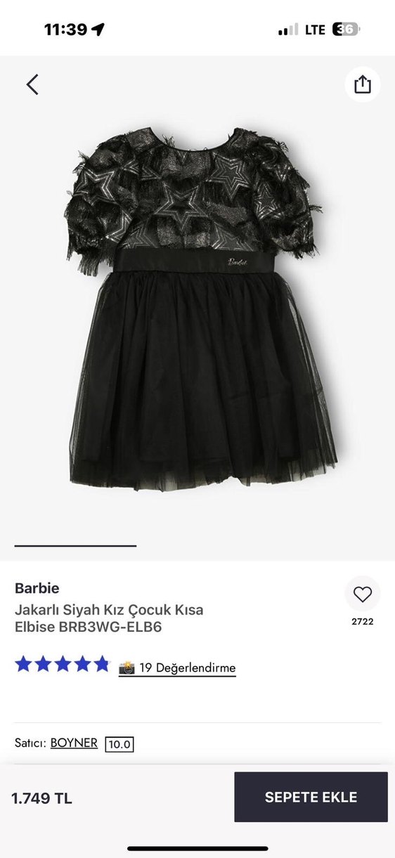 Barbie Jakarlı Siyah Kız Çocuk Elbise