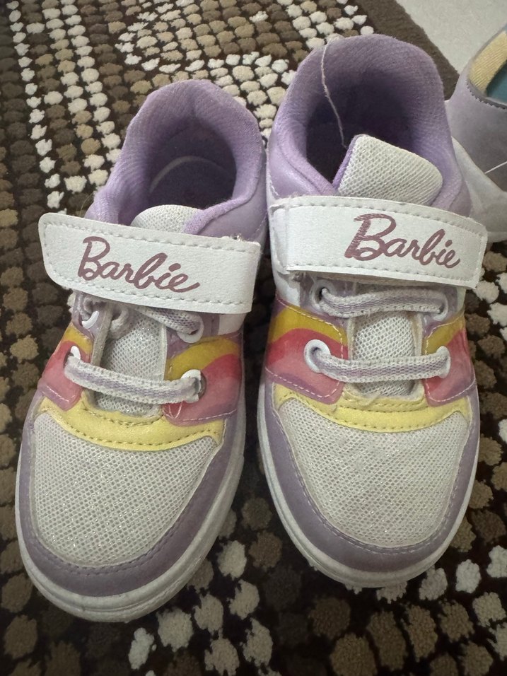 Barbie yazılı, lastikli ve renkli tie-dye desenli, kauçuk tabanlı kız çocuk spor ayakkabısı. 26 numara