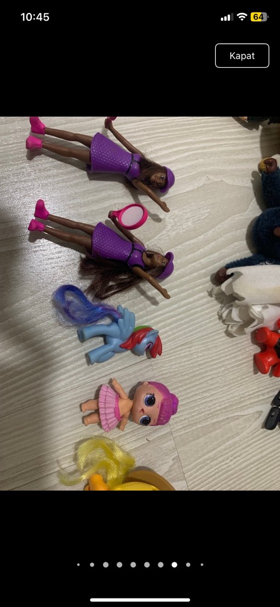 Mor kıyafetli iki bebek ve iki küçük renkli oyuncak figür yer alıyor. Bebeklerin ten renkleri koyu ve canlı detaylara sahip. Barbie koleksiyonu yapanlar için