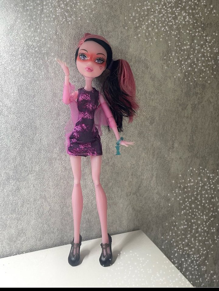 Monster High Draculara barbie bebek, çok eski olduğundan kutuyu bulamıyorum bu yüzden kendi orijinal kutusunda gönderim yapamayacağım. Sağ Kolunun altında küçük bir yırtık bulunmakta (7. Fotoda dahil ettim) boyu yaklaşık 27 cm