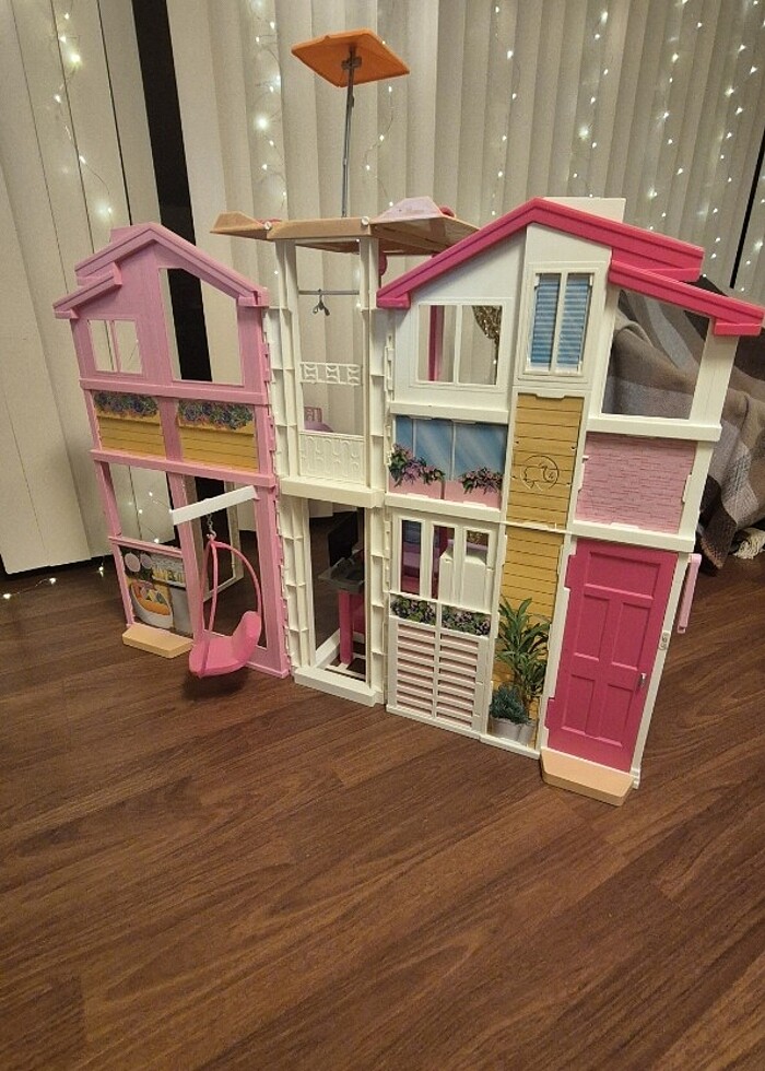 Cok iyi durumda (sadece birkac parcasi eksik) Barbienin asansorlu katlanabilir rüya evi.