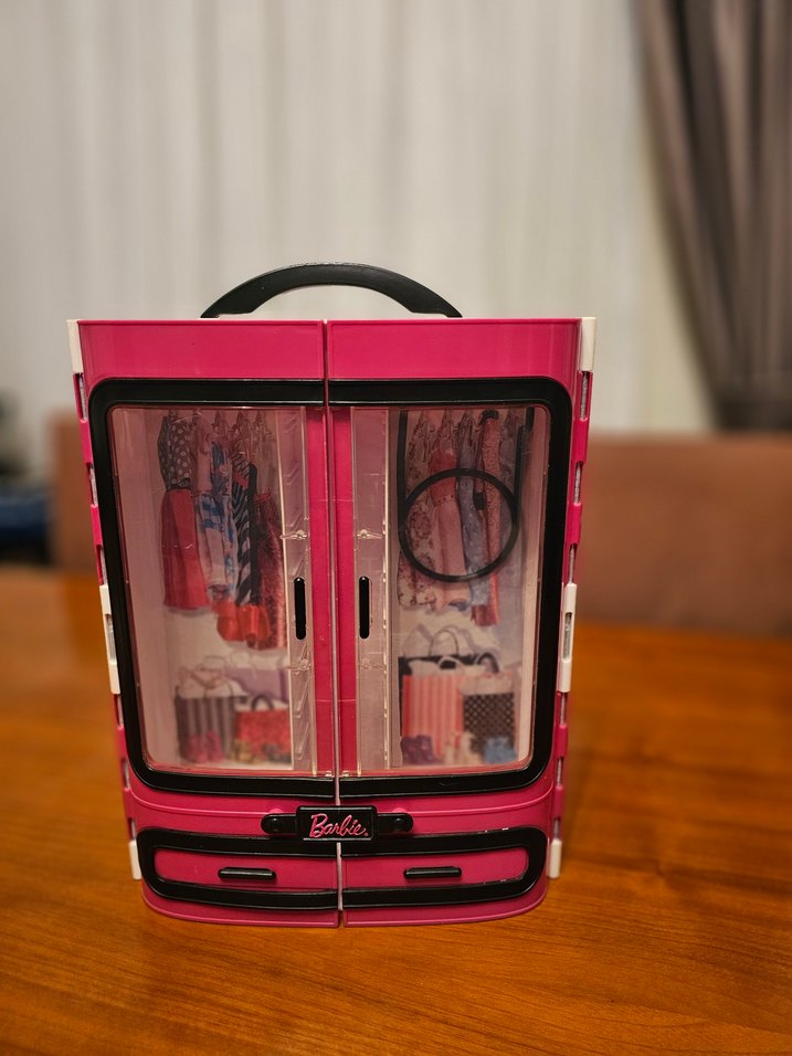 Barbie pembe gardrop. Fotoğraflarda görüldüğü şekli ile satılmaktadır, ilave bir parça bulunmamaktadır.