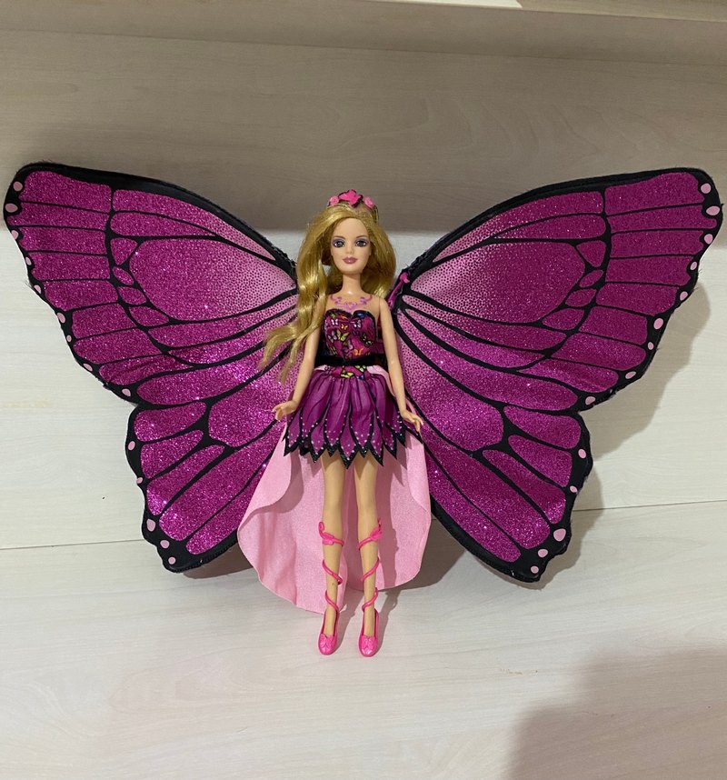 Orijinal Barbie Mariposa Pembe Kanatlı Bebek. Koleksiyon film ürünüdür. Bütün eşyaları tamamdır kanatlarını açıp kapatabiliyor, mekanizması sağlamdır. Çok iyi durumda koleksiyon bebeği Sorularınız için iletişime geçebilirsiniz