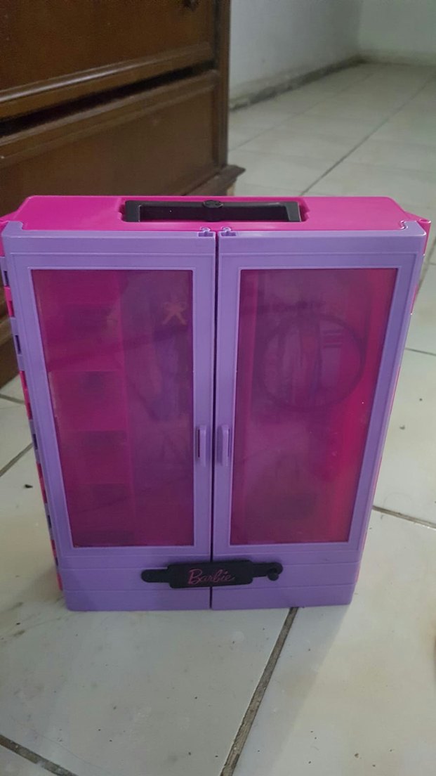 Koyu pembe renkli Barbie oyuncak dolap, iki kapaklı ve taşınabilir saplıdır. Çocukların oyun eşyalarını saklaması için uygundur. resimdeki şekilde gönderilecektir