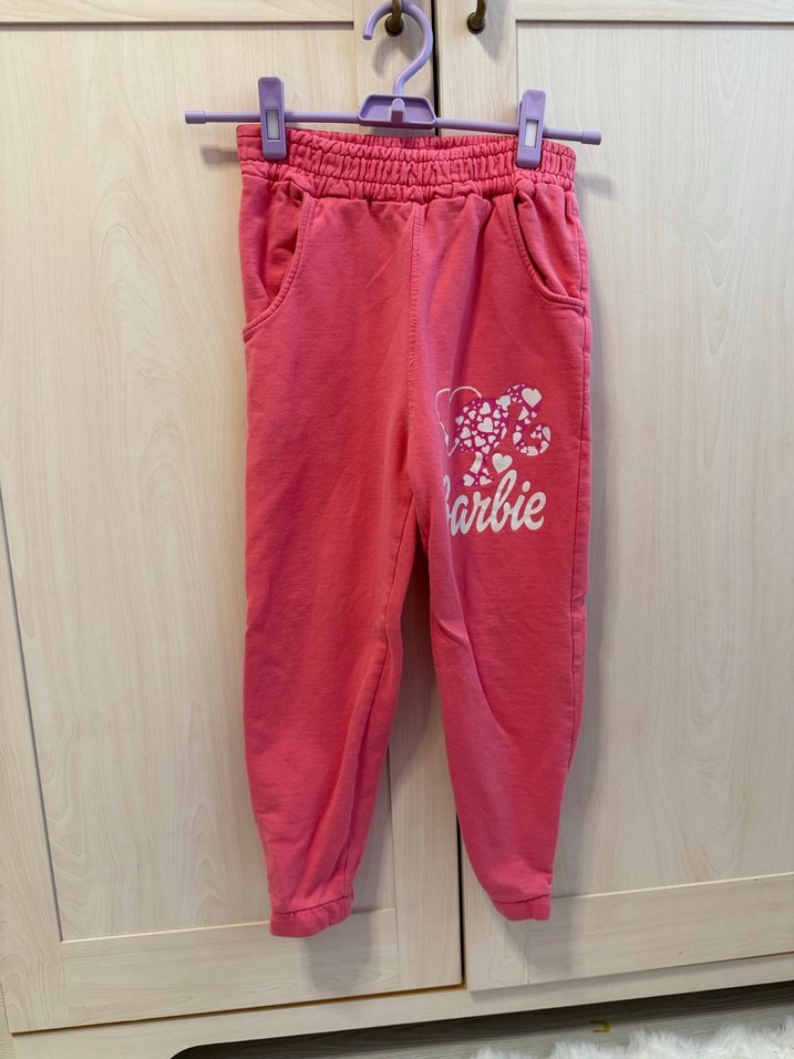 Pembe Barbie kız eşofman altı, bol kesim ve yumuşak kumaş. Elastik bel ve yan cepler bulunur. Rahat günlük kullanım için uygundur.