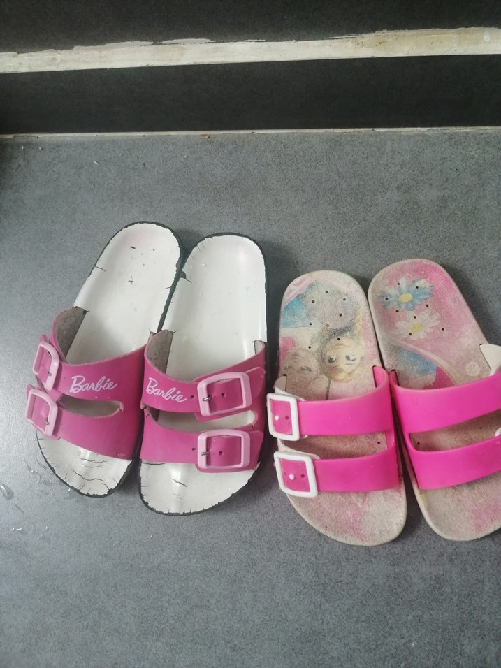 Barbie yazılı, tokalı, pembe kauçuk kız terlikleri. Pastel tonlarda, sade ve rahat tasarım. Ürünler görseldeki gibidir fiyatını uygun tutuyorum ikisinin fiyatıdır