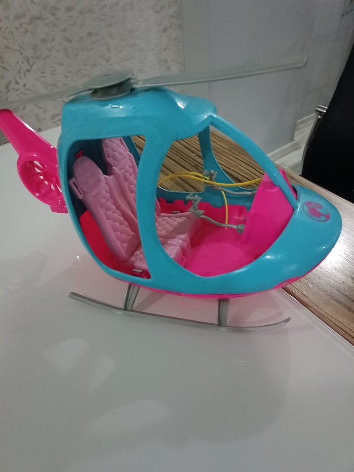 Pembe ve mavi renklerde oyuncak helikopter, detaylı koltuklar ve pervaneleriyle hayal gücünü destekler.