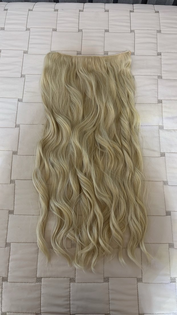 Sentetik kumaştan yapılmış, elastik bantlı açık bej dalgalı saç aksesuarı. 180 dereceye kadar ısıya dayanıklı, saç rengime uymadığı için satıyorum.