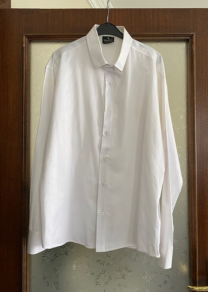 Barbosa Beyaz Gömlek XXL. Kolları ayarlanabilir. Ölçüleri: eni 58 cm, boyu 72 cm’dir