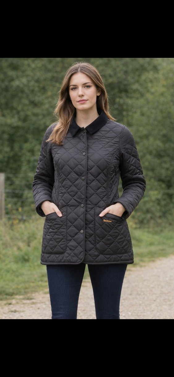 Barbour Kadın Siyah Düğmeli Orta Boy Jacket