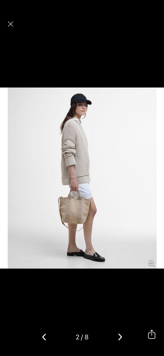 Bej keten kadın tote çanta, gri detaylarla sade ve şık. Günlük kullanım için uygun, desen içermeyen rahat bir aksesuardır. #barbour