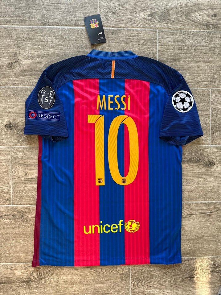Barcelona 2016-2017 İç Saha “Lionel Messi” Forması.Sıfır ve etiketlidir. Barcelona’nın yıldızlarla dolu kadrosunun olduğu zamanlarda giydiği ve Lionel Messi’nin Real Madrid taraftarına gösterdiği formadır. Ürünün kolunda kabartmalı Şampiyonlar Ligi Patch ve Göğüs Kısmında Fifa Champions Patch mevcuttur. Sıfır poşetinde gönderim yapılacaktır. Harika bir koleksiyon ürünüdür. S - M - L - XL - XXL