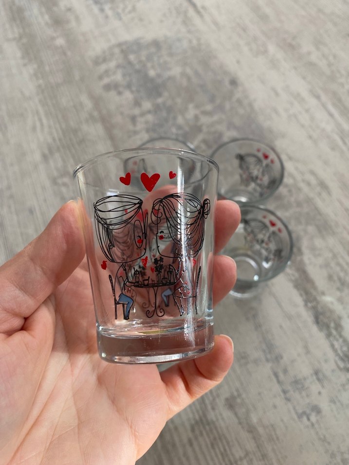 Kahve yanı su bardağı 6lı Bazılarının desenlerinde hafif silinme var