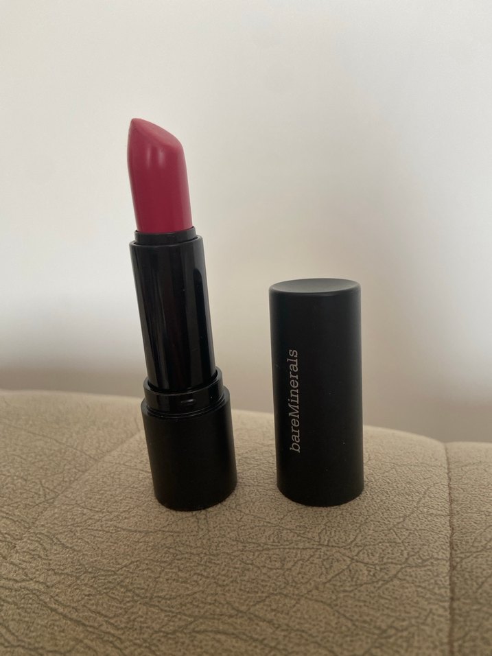 bareMinerals markasına ait koyu pembe renkte, kremamsı dokulu canlı renk veren ruj .