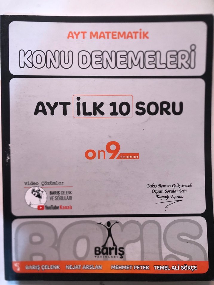Geçen sene aldım ilk denemenin bir iki sorusunu çözüp işaretlemeden falan bırakmışım. Hiç kullanılmadı yani. AYT Matematik konu denemelerinin ilk 10 sorusunu içeren kitap, Barış Çelenk'in video çözümleriyle birlikte 19 deneme sunar.