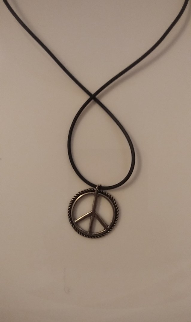 Koyu siyah deri ip ve zincir detaylı barış sembolü uçlu midi uzunlukta kolye, günlük kullanım için uygun bohem punk tarzı. ✌️