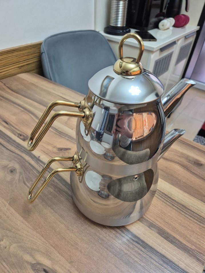 Baron Damla Aile Boy Çaydanlık Takımı.Ürün sıfırdır. Kutusunda gönderilecektir.Resimleri mevcuttur.Üst Çaydanlık 1.35 lt alt çaydanlık 2.3 lt' dir.Kendinden süzgeçlidir.İade yoktur.Almayacagınız ürünlere teklif yapmayın lütfen.