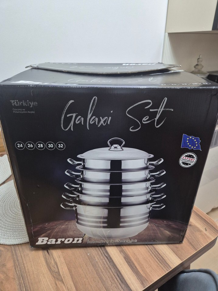 Baron Galaxi Set. Ürün sıfırdır kutusunda gönderilecektir. İçinde 24 cm Tencere, 26 cm Tencere, 28 cm Tencere, 30 cm Tencere , 32 cm Tencere bulunmaktadır.İade yoktur. Sorarak alınız