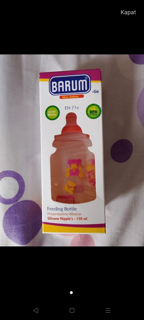 Barum pembe renkli, 150 ml kapasiteli silikon emzikli bebek biberonudur. BPA içermez ve 0-6 ay bebeklere uygundur. EN71c sertifikalıdır.