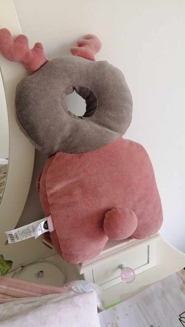 Gri ve pembe renklerde, desenli, yumuşak dokulu çocuk yastığı, sevimli hayvan şeklinde tasarlanmıştır. Bebeğiniz yeni yeni oturken ayaga kalıp yürümeye başlarken sırt ve kafa arkasını çarpmalara karsı korur.