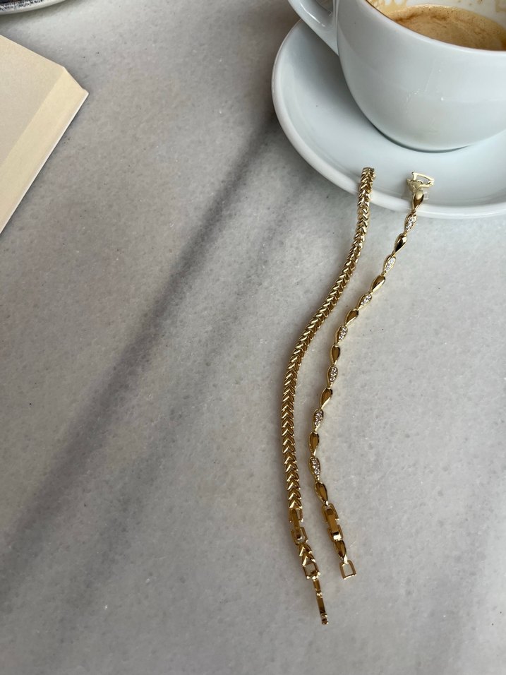 Zincir detaylı, parlak altın renkli kadın el zincirleri. Minimalist ve yılan deseni tarzında, günlük kullanıma uygun şık tasarım. ✨